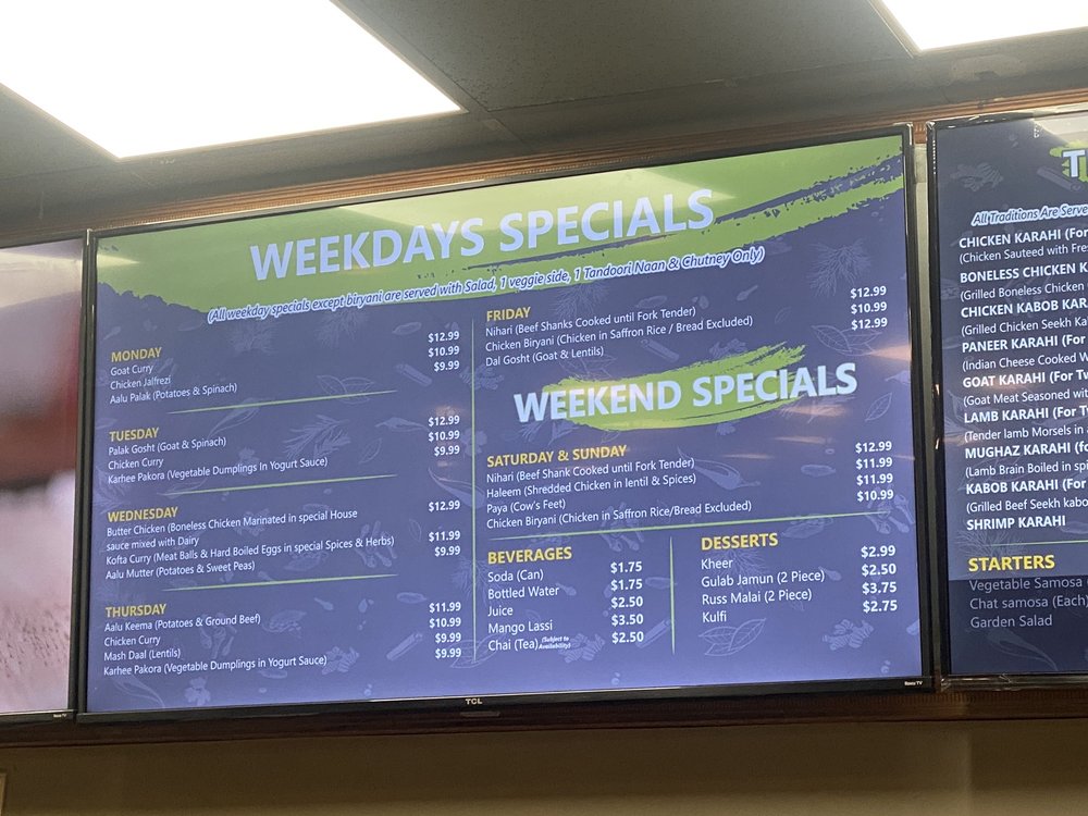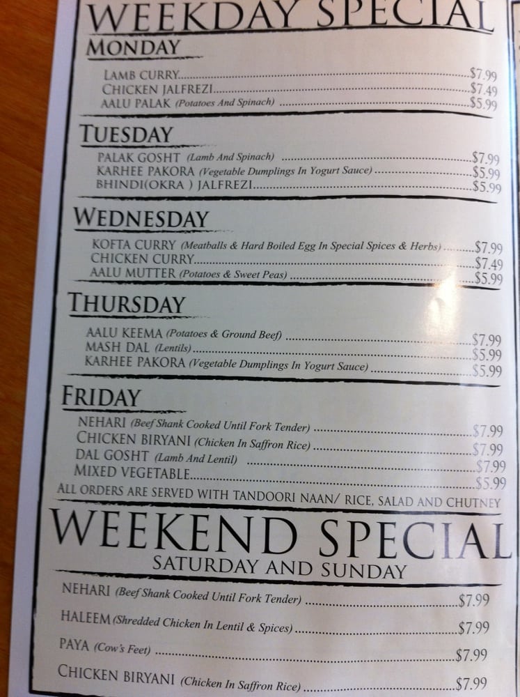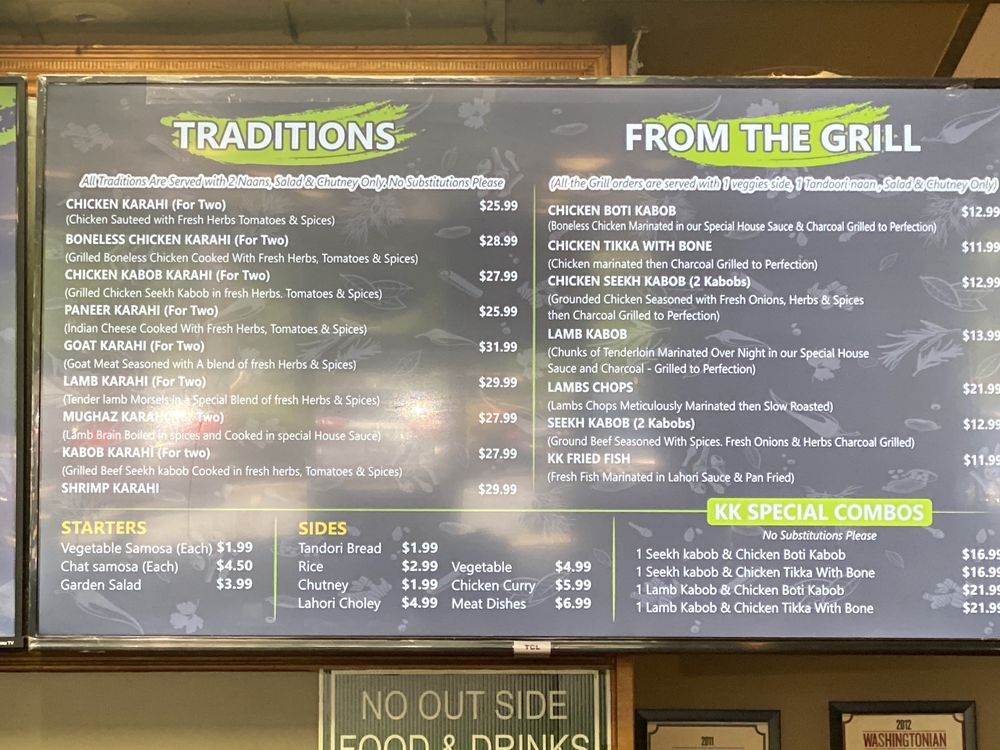 Kabob N Karahi in Silver Spring, MD, offers a diverse menu of Pakistani and Indian dishes. Customers rave about the flavorful and filling options, such as the chat samosa, mango lassi, bone-in chicken, chicken boti kabob, and chicken tikka. The portions are sizeable, and the service is quick. The restaurant is praised for its authentic Pakistani cuisine, including biryani, naan, curries, and side dishes. Customers appreciate the variety of options, including vegan choices, making it suitable for everyone. The cozy atmosphere and attentive service make dining here a pleasant experience. Despite some minor complaints about onion-heavy salads and limited drink options, Kabob N Karahi remains a top choice for delicious and authentic South Asian cuisine.
